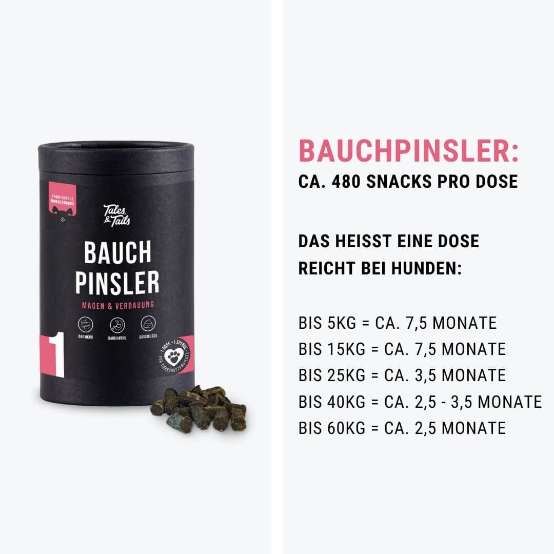 - Hunde bis 5kg: 2 Snacks pro Tag