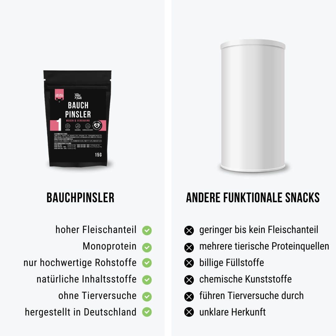 - Hunde bis 5kg: 2 Snacks pro Tag