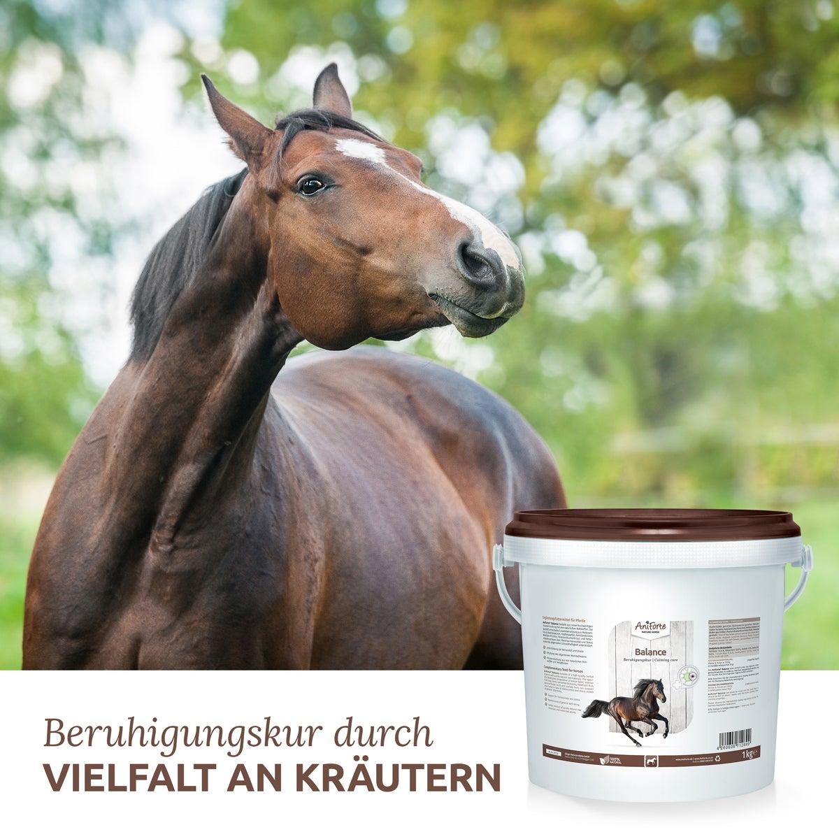 BeschreibungBalance für Pferde - Natürliche BeruhigungFördert die natürliche Schutzfunktion des Pferdes gegen Angst Stress