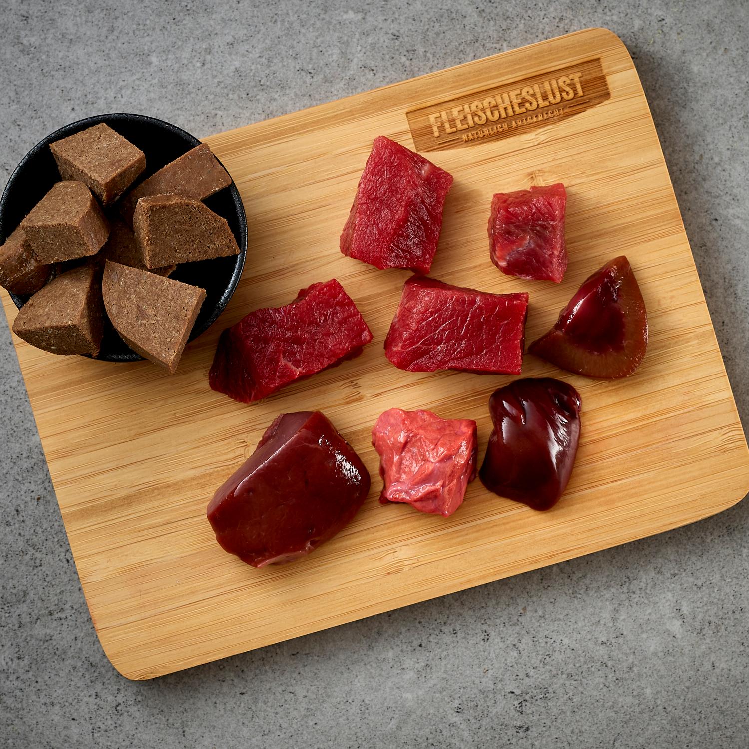 Dies war der Startschuss für FLEISCHESLUST. In Zusammenarbeit mit einem regionalen und familiengeführten Fleischproduzenten und einem Tierarzt aus Niederbayern entwickelten wir eine Futterlinie, die frei von jeglichen Zusatzstoffen, Schwermetallen und schwer verdaulichen Füllstoffen ist und dabei der ursprünglichen Abstammung des Hundes vom Wolf gerecht wird.