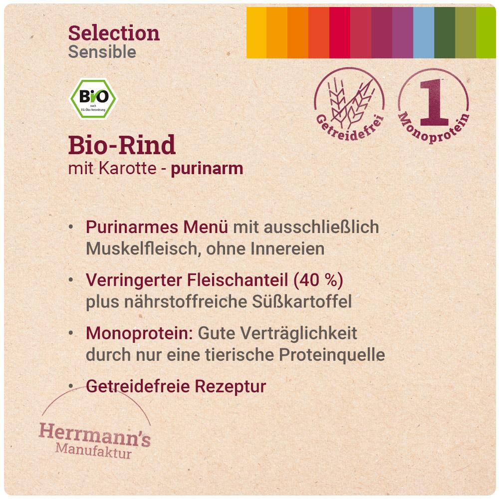 Produktinformationen "Herrmanns Herrmann's Selection Sensible Bio Rind mit Karotten - purinarm 400 g"