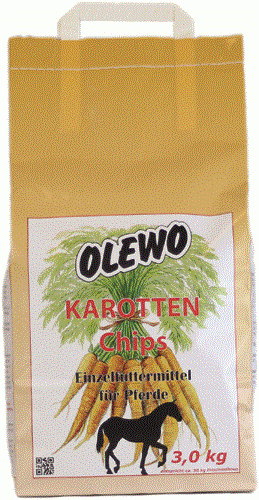 Ein aus 100% Karotten hergestelltes Naturprodukt ohne den Zusatz von Futteröl. OLEWO Karotten-Chips sind dank ihrer besonderen Süße eine ideale Ergänzung als appetitanregendes Futter und eine natürliche, energiearme Vitamin-Beilage zum Raufutter.