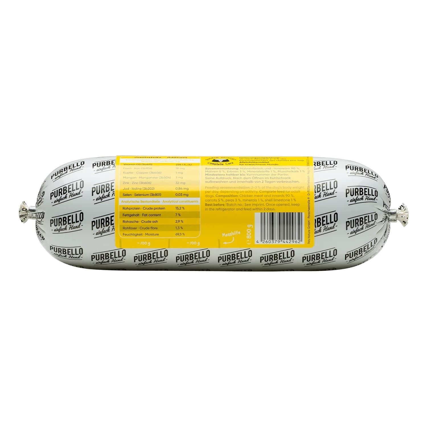 Petsnature PURBELLO HundeRolle Huhn mit Möhren Erbsen 800g - 800 Gramm